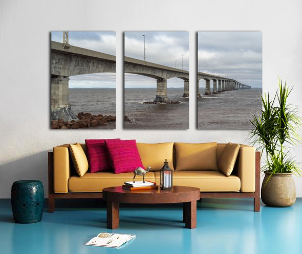 Get this artwork "Confederation bridge wide view cloudy" in a framed print.