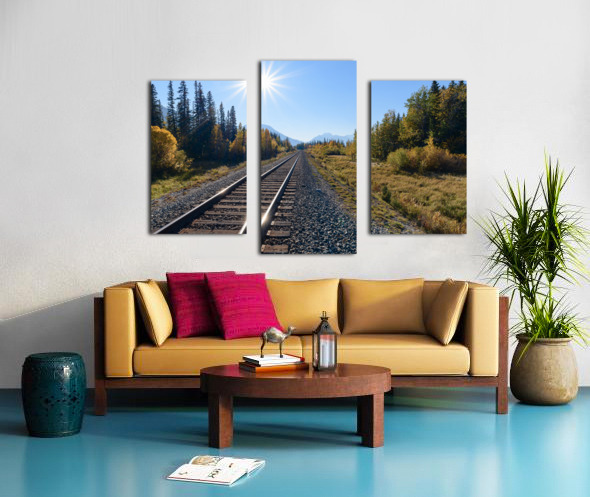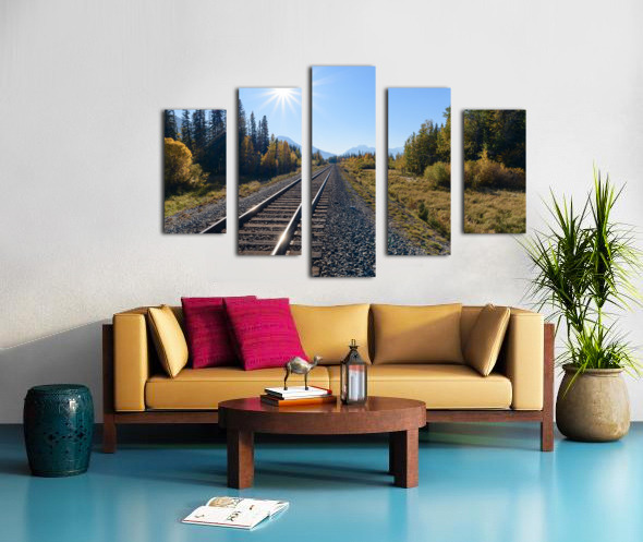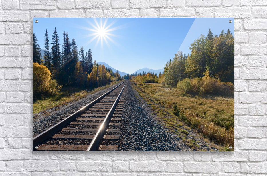 Get this artwork "Banff train tracks with sun mountains 3" in a framed print.