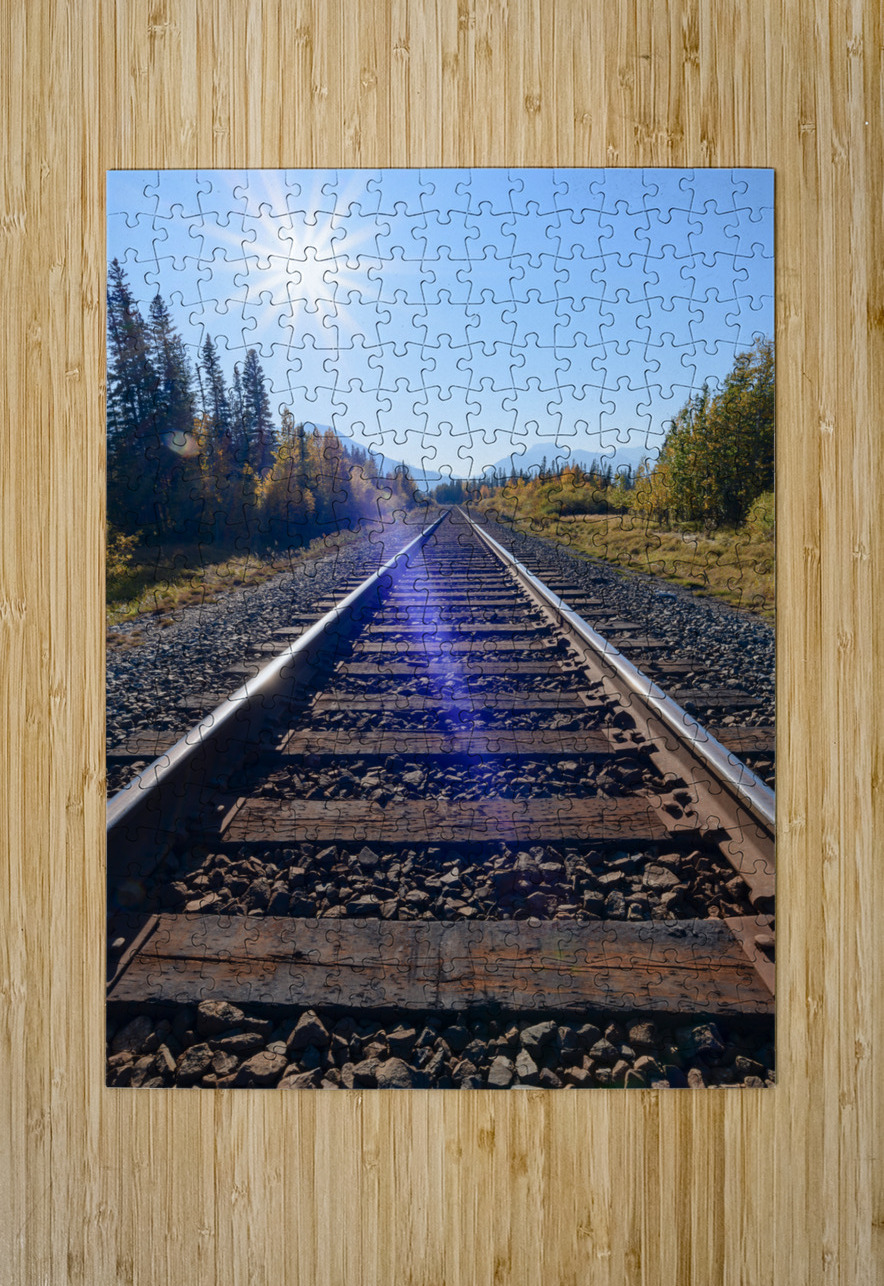 Banff Train Tracks with sun Justin Richard Batten Puzzle printing