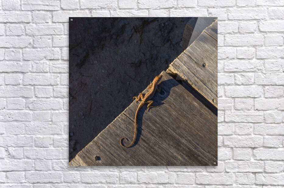 Get this artwork "Gecko Anole on boardwalk" in a framed print.