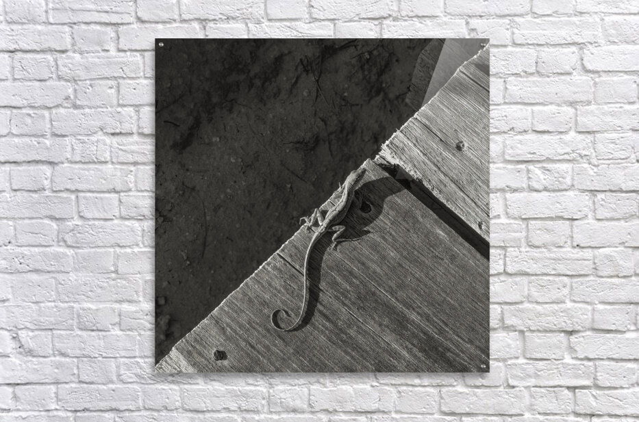 Get this artwork "Gecko Anole on boardwalk in BW" in a framed print.