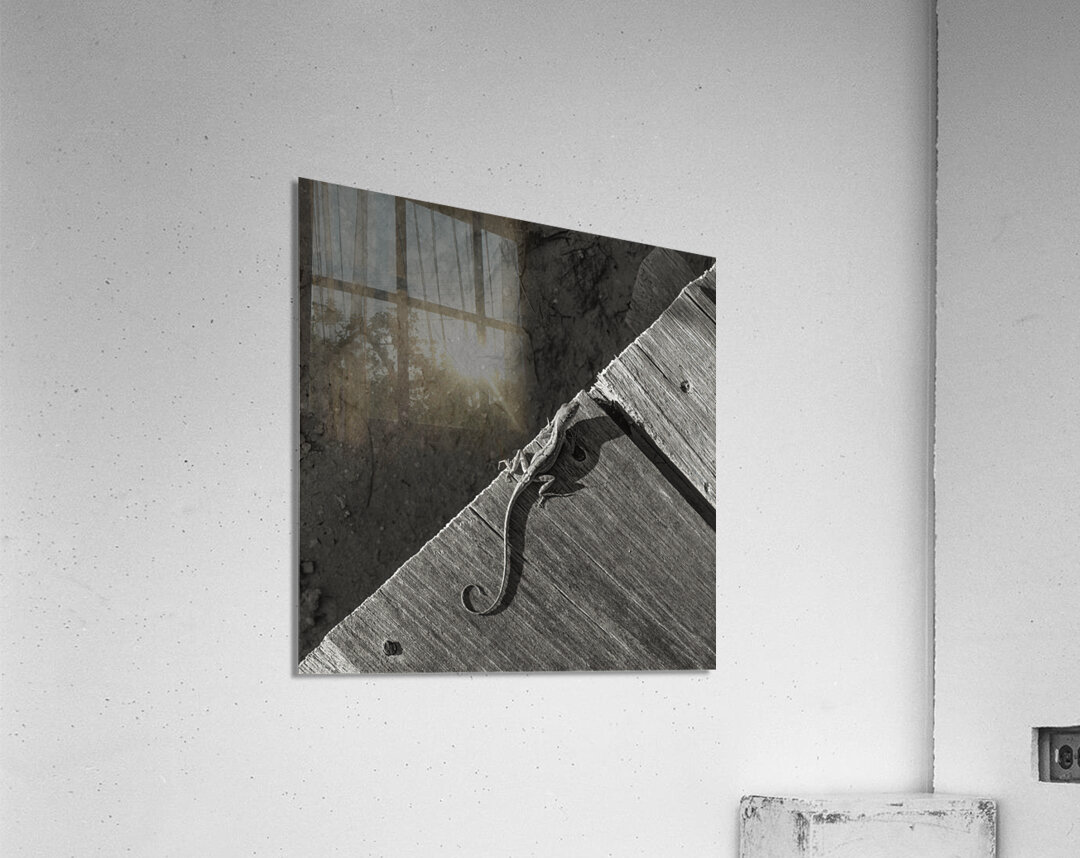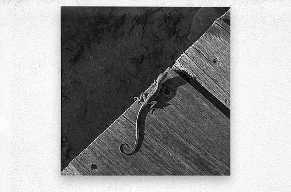 ABOUT THIS ARTWORK: GECKO ANOLE ON BOARDWALK IN BW