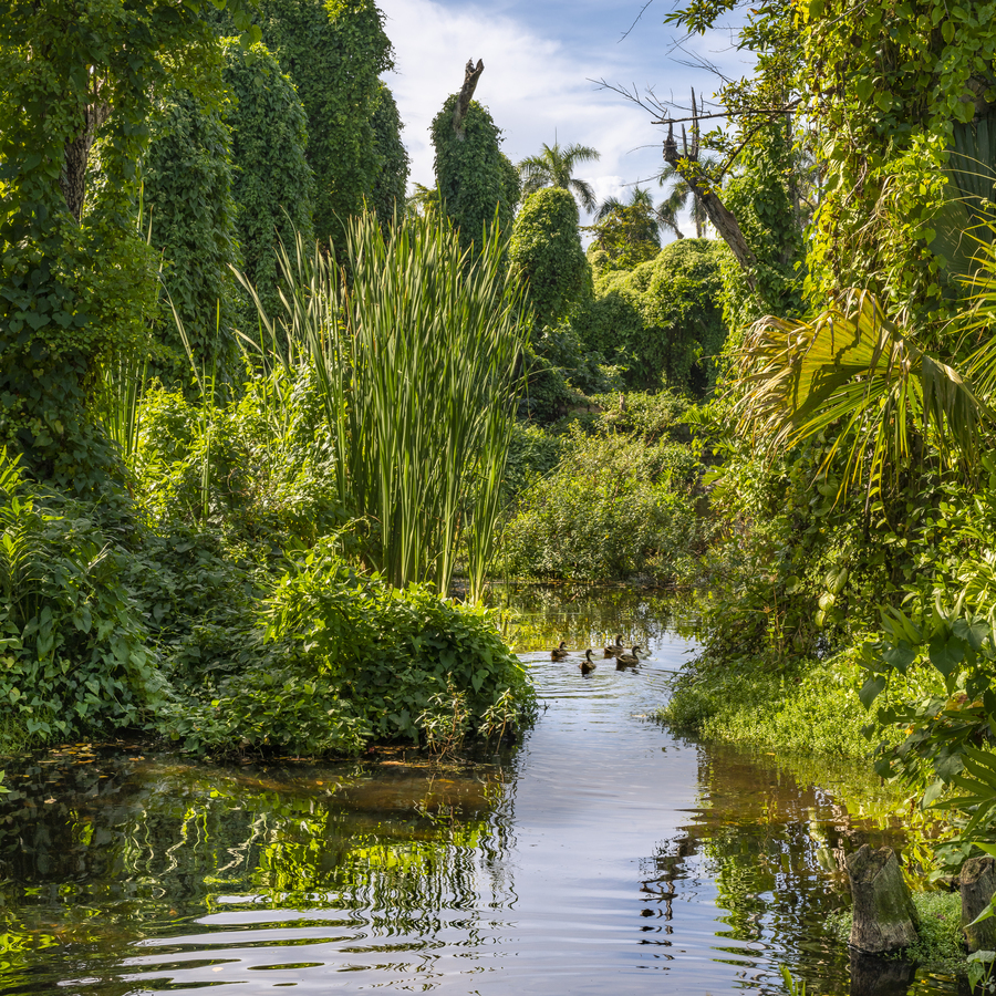 ducks swimming in a jungle pond
