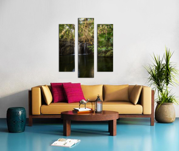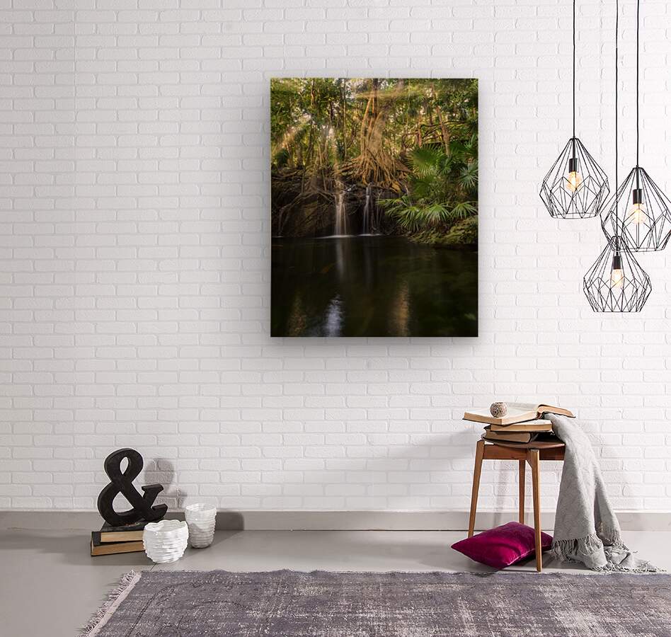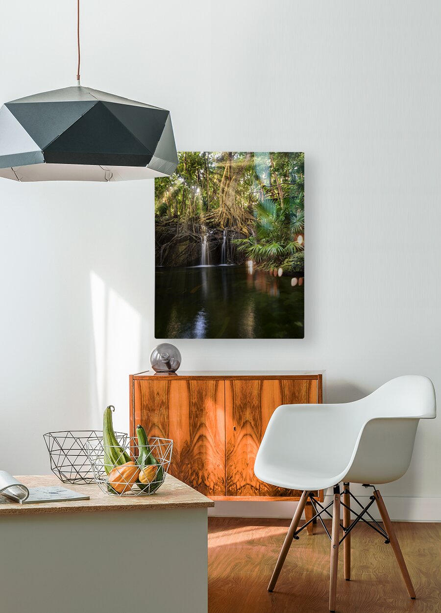 Get this artwork "Jungle tree waterfall sunrays" in a framed print.