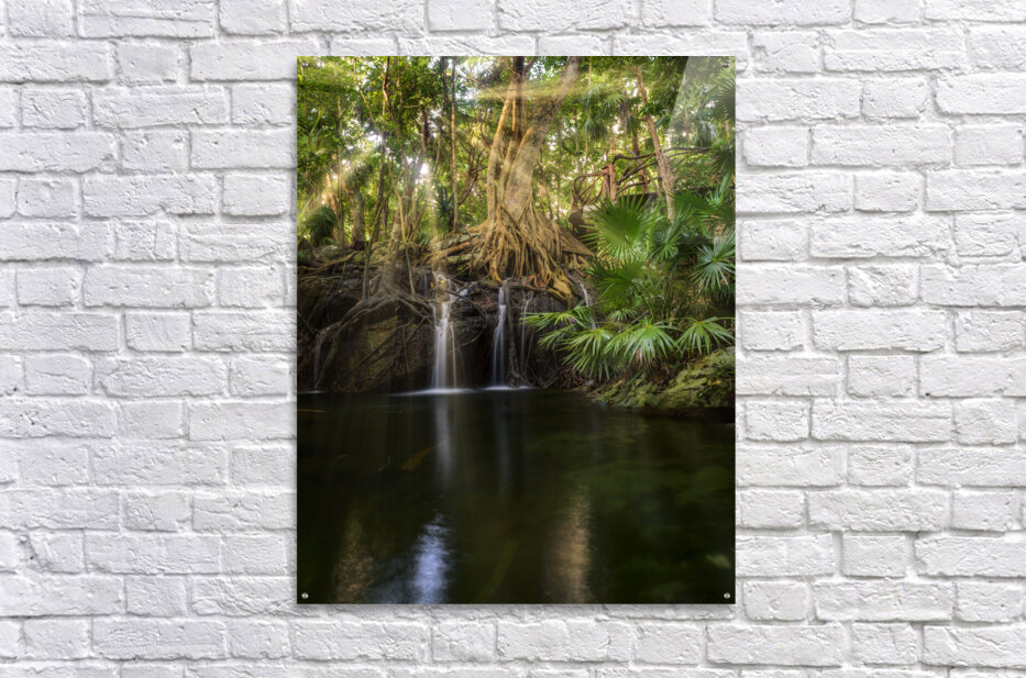 ABOUT THIS ARTWORK: JUNGLE TREE WATERFALL SUNRAYS