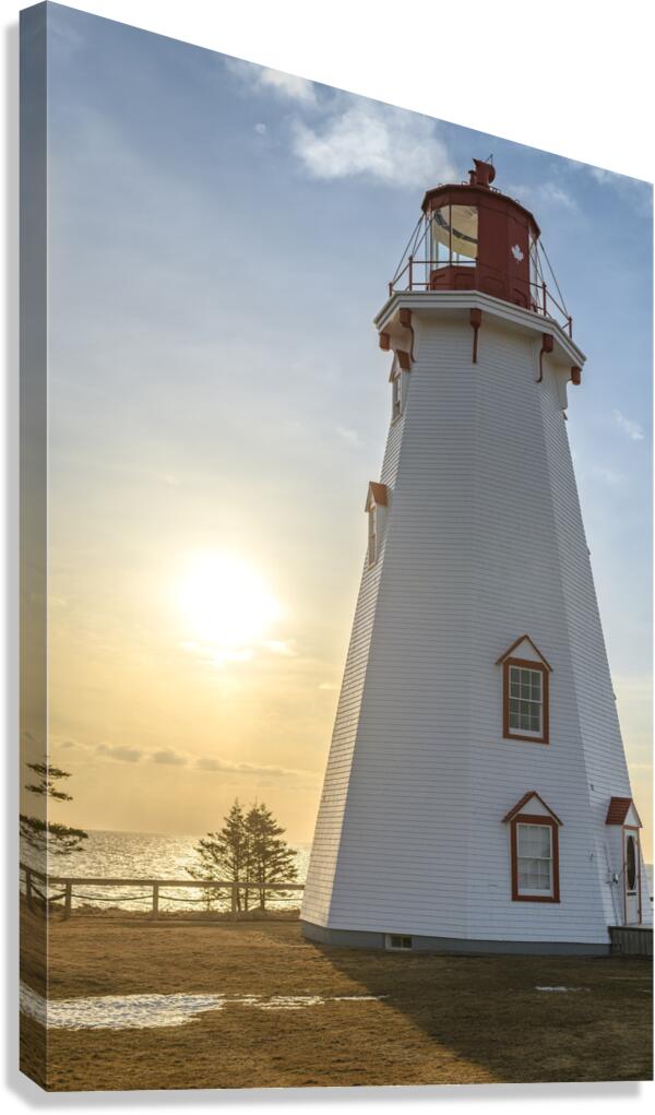 Morning sunrise at Panmure Island Lighthouse, PEI, Canada, as the last of the snow melts.