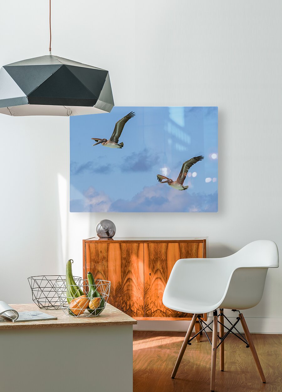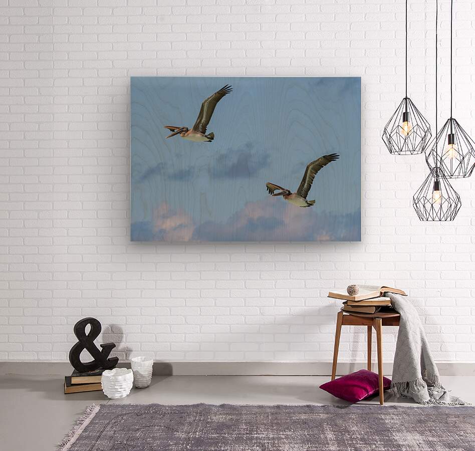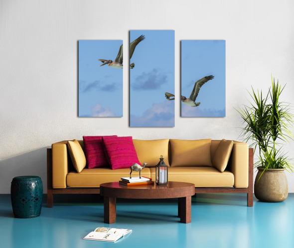 Get this artwork "Two Cuban Pelicans in flight 2" in a framed print.
