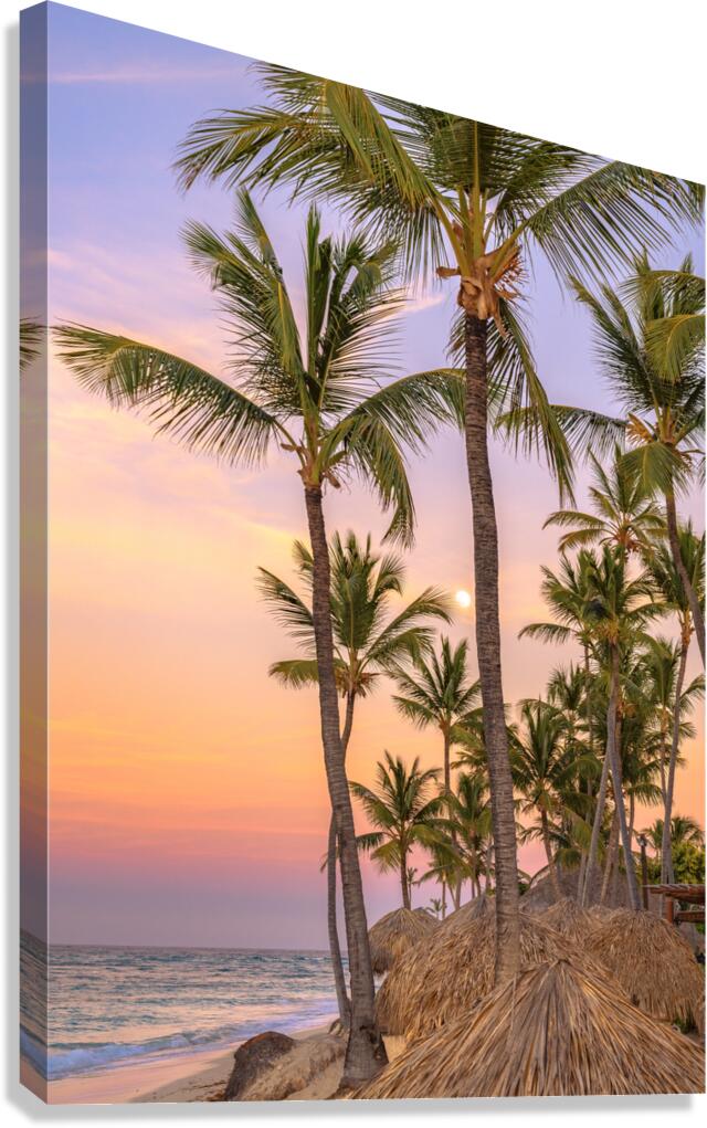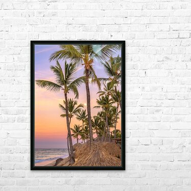 Get this artwork "Palmtrees on coloured sky with moon" in a framed print.
