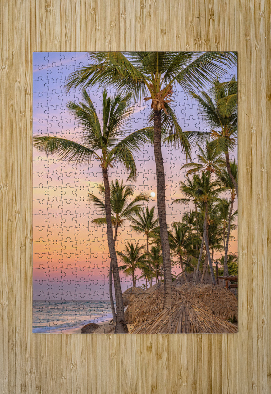 Palmtrees on coloured sky with moon Justin Richard Batten Puzzle printing