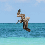A cuban pelican dive fishing in ocean