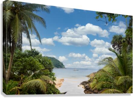 Ya-Nui beach lookout through jungle with island view.