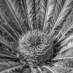 Tropical plant centre close up in black and white
