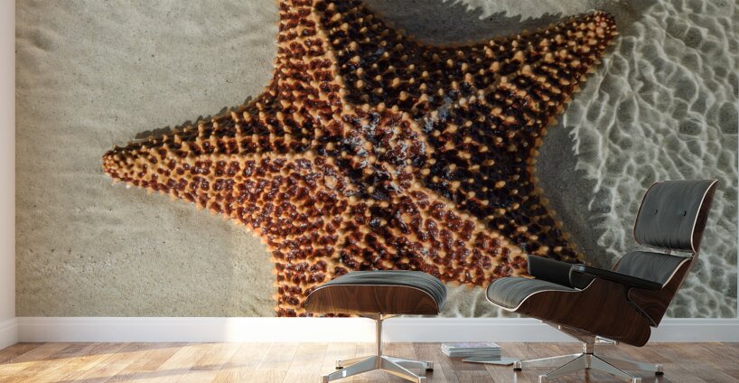 Large starfish in the ocean water on the sand