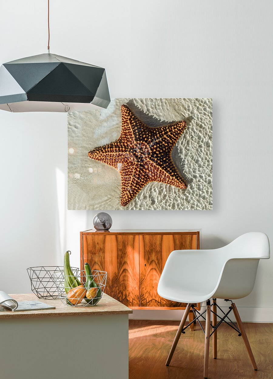 Get this artwork "Giant Starfish on beach in ocean" in a framed print.