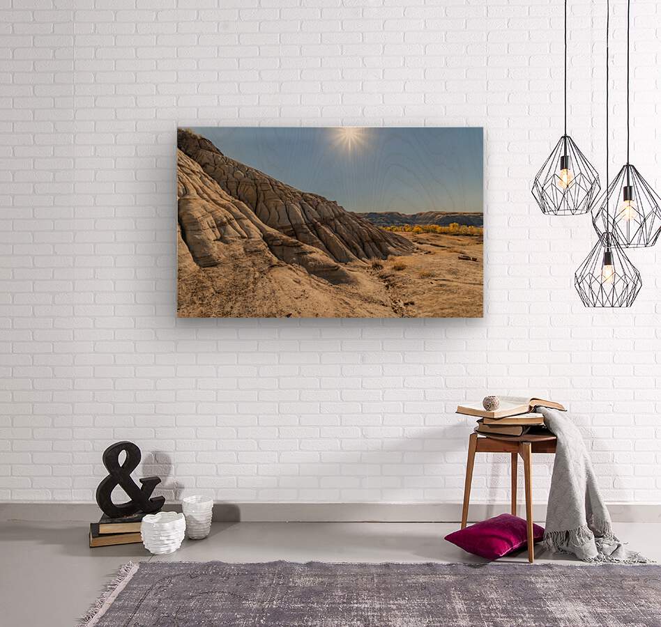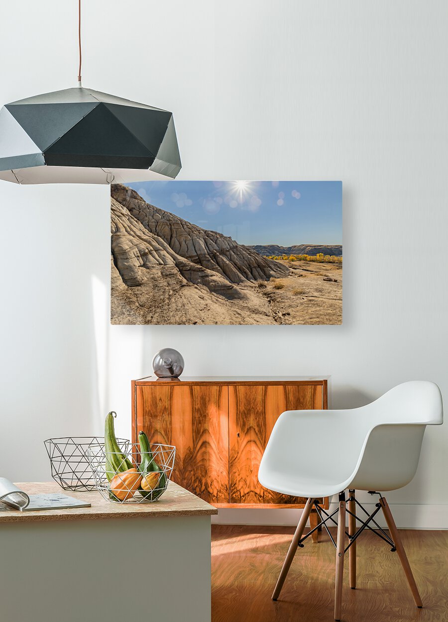 Hoodoo hills with the sun in Drumheller, Alberta, Canada
