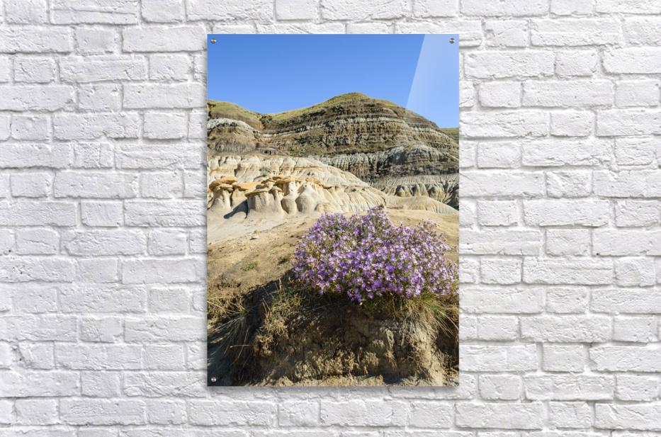 Hoodoos rocks with purple flowers Picture Frame Printing