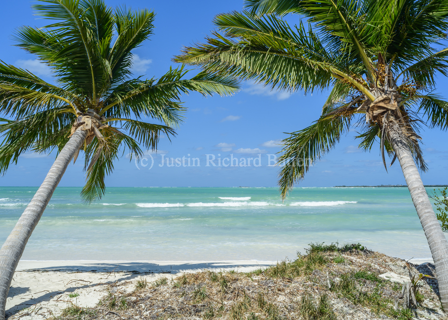 Cuban beach with 2 palmtrees Justin Richard Batten Puzzle printing