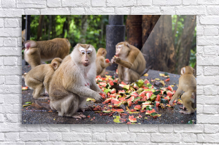 Get this artwork "thai monkeys eating watermelon" in a framed print.