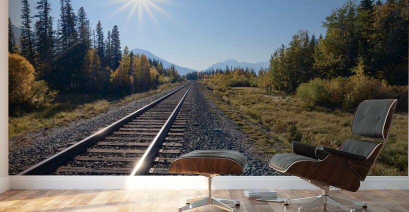 Banff train tracks with sun mountains 3 Justin Richard Batten Impression de puzzle