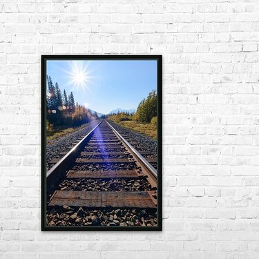Banff Train Tracks with sun Cadre photo