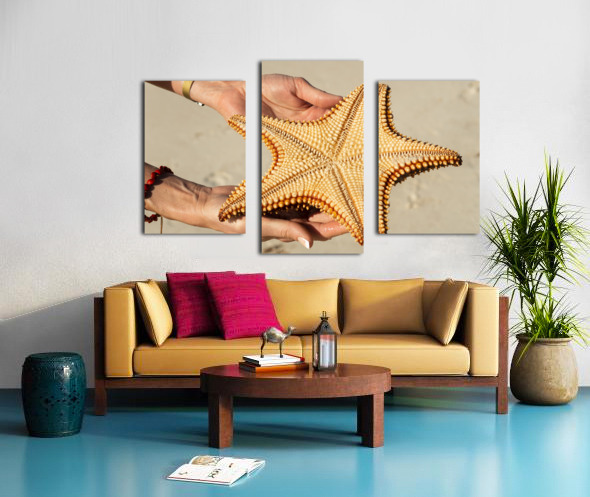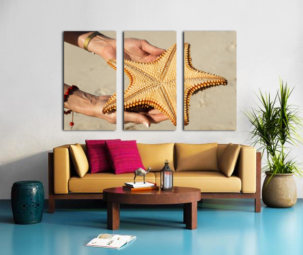 Starfish in womans hands Impression du cadre