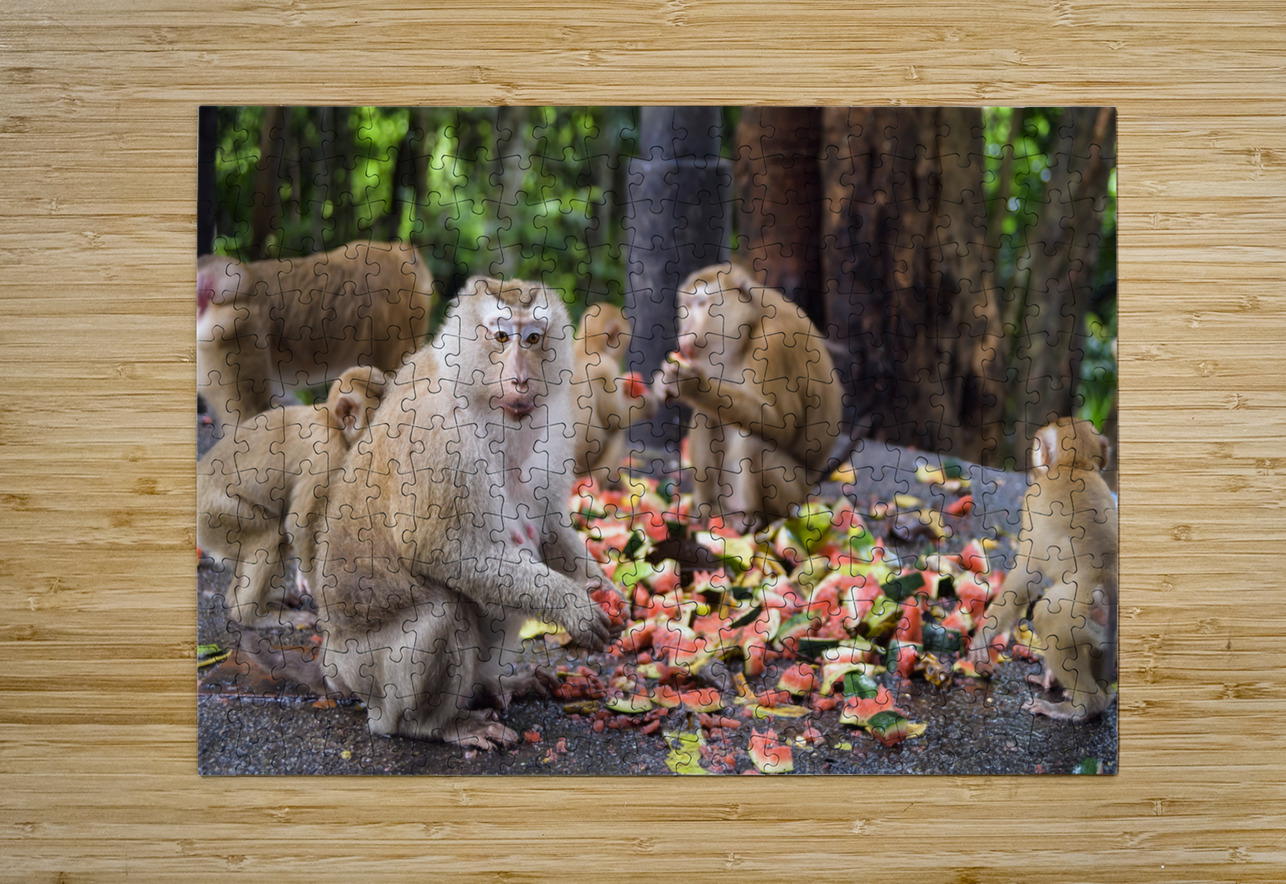 thai monkeys eating watermelon Justin Richard Batten Puzzle